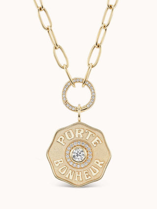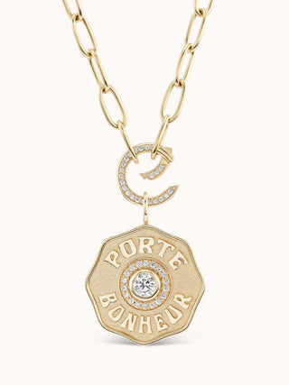 Large Raised Gold Porte Bonheur Sardinia Chain II White Diamond