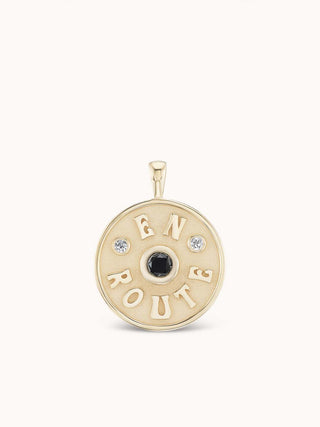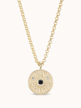 For all our fellow travelers on this journey of life. A reminder to keep moving and evolving, our En Route necklace is about moving forward and not looking back. It symbolizes being En Route to a better self and a better world. This Medium En Route necklace features an Black Diamond surrounded by two smaller diamonds. The Diamond illuminates its wearer, enhancing inner vision and opening the mind to new possibilities. It is the ultimate gemstone of strength and brilliance.