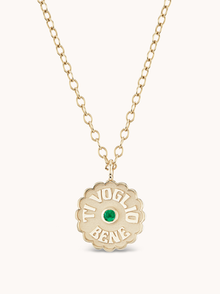 Large Raised Gold Ti Voglio Bene Emerald Necklace