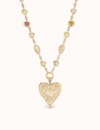 Large Raised Gold Ti Voglio Bene Pink Tourmaline Necklace