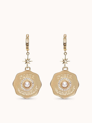 Carry it with you, wherever you may go. Our Mini PB Charm Necklace is hand-painted with an enamel inscription reading 'Porte Bonheur', French for Lucky Charm. On the backside of the coin, you find a delicately engraved star, another powerful symbol of guidance and good fortune