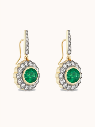 The precious Alexandra earrings from our Minerva Collection showcase beautiful Emerald surrounded by White Diamonds, set in blackened Yellow Gold. The Minerva Collection is named after the Roman goddess of wisdom and the arts (also known as Athena in Greek mythology). As the collection’s namesake suggests, the pieces in the collection represent women of great intellect and virtue – like the Marlo Laz woman – and are individually named after muses both real and mythological.