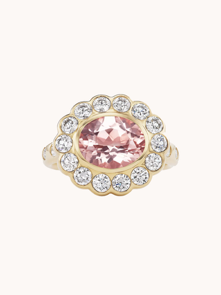 The precious Alexandra Ring from our Desert Rising collection showcases a beautiful Morganite at its center, adorned with white diamonds. A modern heirloom in the making!