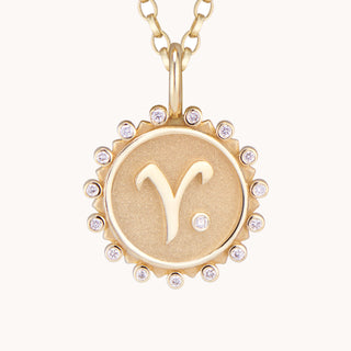Aries (March 21 — April 20) have a naturally optimistic and courageous personality! A lover of all things beautiful, our stunning Zodiac Necklace is the perfect adornment for this creative sign. The pendant with the classic astrological symbol is created from 14k yellow gold with white diamonds.