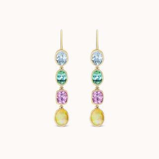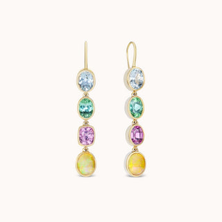 Named for the Roman Goddess of love and beauty, an ancient Italian goddess of the gardens and the spring. A gemstone palette inspired by the colors of Botticelli’s The Birth of Venus. Aquamarine, Mint Tourmaline, Pink Tourmaline, and Opals - the color palette found in the birth of Venus painting.