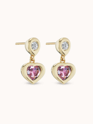 An ode to the magic of gemstones, our Gemma Heart Dangles highlight the beauty of the stones within. Equally sophisticated and cool, set with Aquamarine stones and a thick gold bezel these earrings transition from day to night seamlessly.