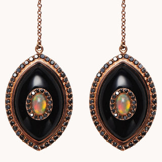 An ancient talisman originating from the near East, our Iconic series revisits the evil eye with our sculptural and ornate perspective. Onyx for protection, diamonds for strength, and opals for spontaneity, these earrings are spiritually minded with a fine bijou twist.