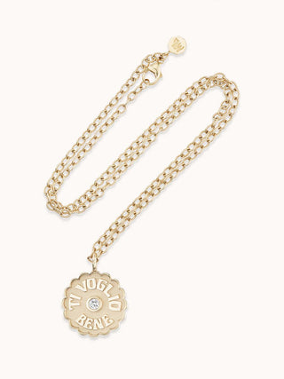 Large Raised Gold Ti Voglio Bene Necklace Large Raised Gold Ti Voglio Bene Necklace Large Raised Gold Ti Voglio Bene Necklace Raised Gold Mini Diamond Halo Porte Bonheur - Marlo Laz