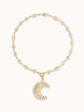 This enchanted Southwestern Necklace from our "Desert Rising" Collection is composed of diamonds with our large Crescent Moon at its center. The Sun and Moon emblems represent the stark beauty & artistic heritage of the Southwestern desert.