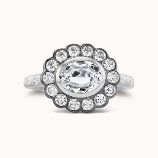 The Lexie Ring features an Alexandra-set White Topaz at the center adorned with surrounding diamonds. A mini version of our classic Alexandra Ring and the perfect something special on your wedding day.