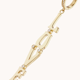 Our large Love earrings from the Marlo Laz alphabet collection in our bespoke font. The gold letters are connected by diamonds to represent strength and an unbreakable bond.
