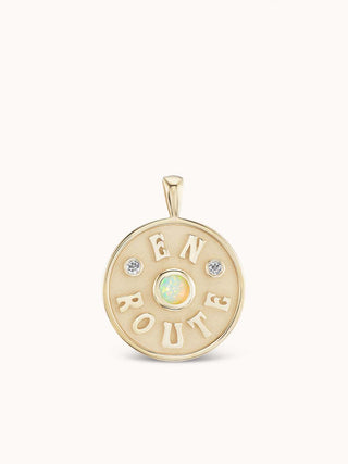 For all our fellow travelers on this journey of life. A reminder to keep moving and evolving, our En Route necklace is about moving forward and not looking back. It symbolizes being En Route to a better self and a better world. This Medium En Route necklace features a Opal surrounded by two smaller diamonds. The Diamond illuminates its wearer, enhancing inner vision and opening the mind to new possibilities. It is the ultimate gemstone of strength and brilliance.