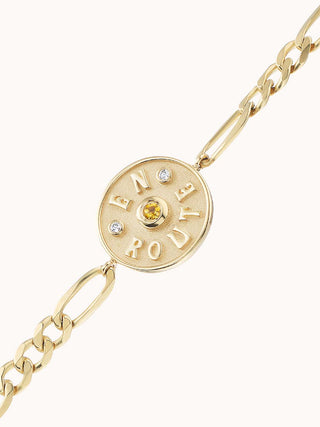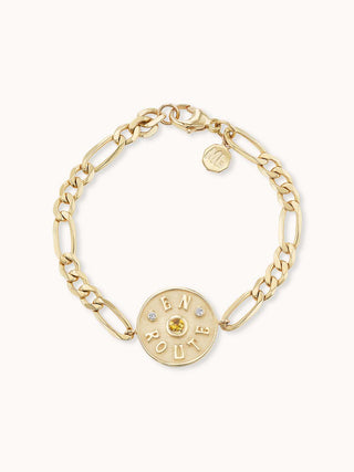 For all our fellow travelers on this journey of life. A reminder to keep moving and evolving, our En Route necklace is about moving forward and not looking back. It symbolizes being En Route to a better self and a better world. This Wee En Route Bracelet features an Citrine surrounded by two smaller diamonds. The Diamond illuminates its wearer, enhancing inner vision and opening the mind to new possibilities. It is the ultimate gemstone of strength and brilliance.
