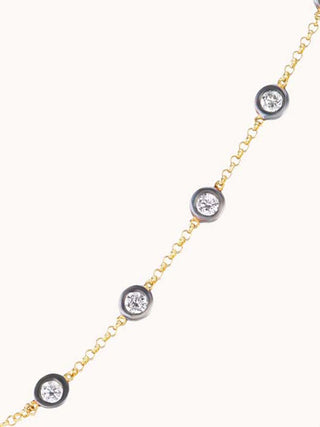 Our Marlo Laz Natasha Necklace was originally inspired by a classic diamonds by the yard necklace, updated with our signature rhodium plating, this necklace offers a fresh alternative to an all-time classic. Handcrafted in 14-karat yellow this piece features round brilliant cut diamonds with rhodium plating that are strung together by a 14k gold chain. A wonderful gift for yourself or a loved one, whether to mark an occasion or simply just because.