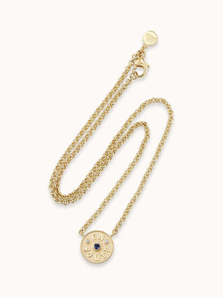 For all our fellow travelers on this journey of life. A reminder to keep moving and evolving, our En Route necklace is about moving forward and not looking back. It symbolizes being En Route to a better self and a better world. This Petite En Route Necklace features a Blue Sapphire surrounded by two smaller diamonds. The Diamond illuminates its wearer, enhancing inner vision and opening the mind to new possibilities. It is the ultimate gemstone of strength and brilliance.