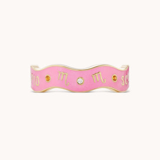 The Wave Collection speaks to our ability to overcome challenges and ride the waves of life. With a shape that represents the duality of tranquility and power, as well as water’s ability to cleanse the soul, the stackable Wave Bands align like a perfect yin and yang. In the wanderlust-infused spirit of Marlo Laz, the stacking of the bands is inspired by the Japanese pattern known as Seigaiha, which represents surges of good luck. Available in three sizes that are meant to be mixed and matched. This Zodiac wave band features a motif of Scorpio, its coordinating symbols, as well as Citrines and Diamonds to represent the October and November birthstones.
