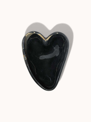 Small Marble Heart Dish Black