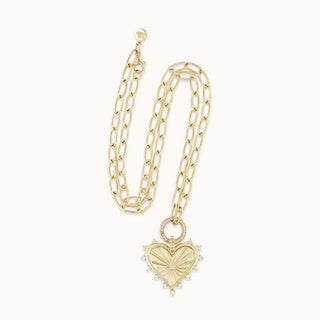 This romantic yet edgy Spiked Heart Charm is one of our all-time favorites! Hand-cast from 14-karat gold, the pendant resembles a starburst heart, centered by a dazzling round-cut diamond. The design is completed by a frame of diamond-encrusted spikes, representing strength and perseverance. Sold with our Sardinia II Chain and crafted for the easy addition of multiple charms.